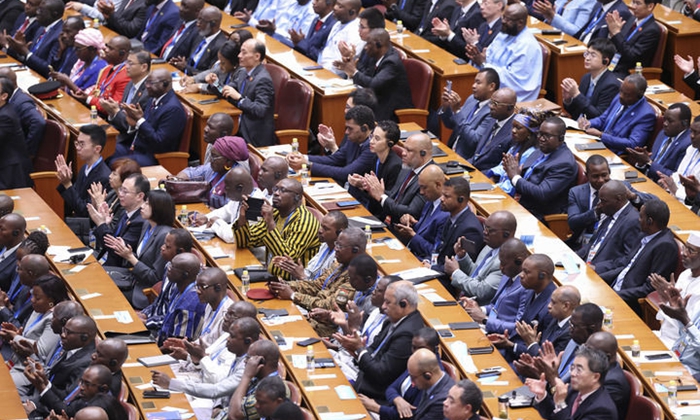 “面向未来,我提议,将中国同所有非洲建交国的双边关系提升到战略关系层面,将中非关系整体定位提升至新时代全天候中非命运共同体!”